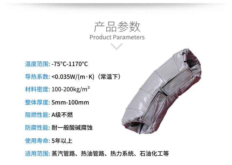 蒸汽管道保溫衣可根據(jù)不同形狀的設(shè)備量身定制各種保溫層,適用于飲料,食品,石油化工,冶金,造紙,電力等行業(yè),其材料為特殊材料,隔熱性能良好,使用壽命長,不易老化,大大提高了利用率和降低維修維護(hù)成本。韌性好,易于彎曲聯(lián)接??梢源蟠蟾纳乒ぷ鳝h(huán)境,降低工作環(huán)境溫度,重要的是防止工作人員出現(xiàn)意外。